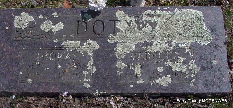 | DOTY, Thomas Alexander | Sept. 11, 1868 Jenkins, Barry Co., MO |