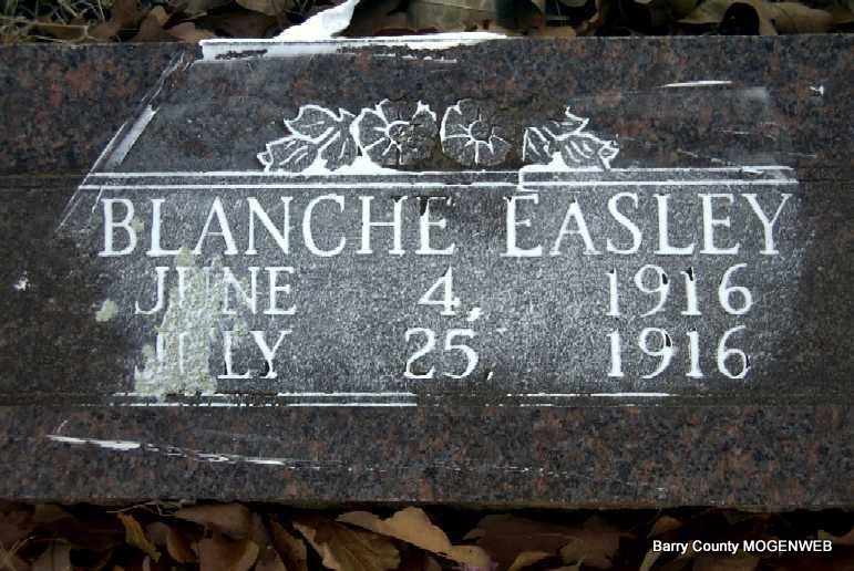 | EASLEY Blanche | June 4, 1916 | July 25, 1916 | Research Note: Blanch Easley was a daughter of Finis and Edna "Josie" (Curry) Easley. Finis' parents were Edward and Mary E. (Russell) Easley. | Photo Note Darla Ball Marbut |
