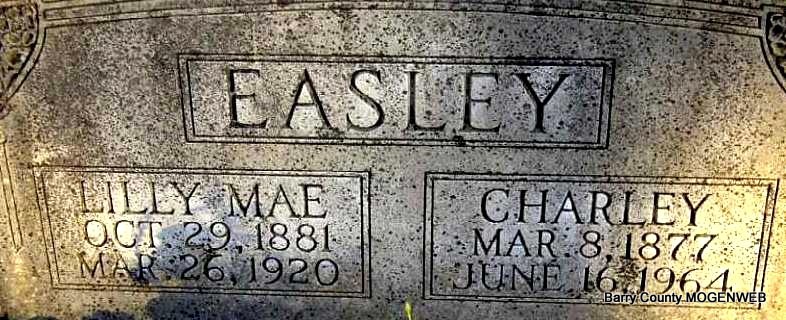 | EASLEY, Mollie Louise (LARECY) | Sept. 22, 1883 Eagle Rock, Barry Co., MO |
