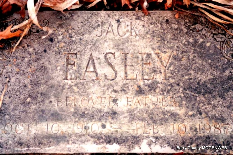 | EASLEY, Jack | Oct. 10, 1910 | Feb. 10, 1987 | Inscription: "Beloved Father" | Photo Darla Ball Marbut |