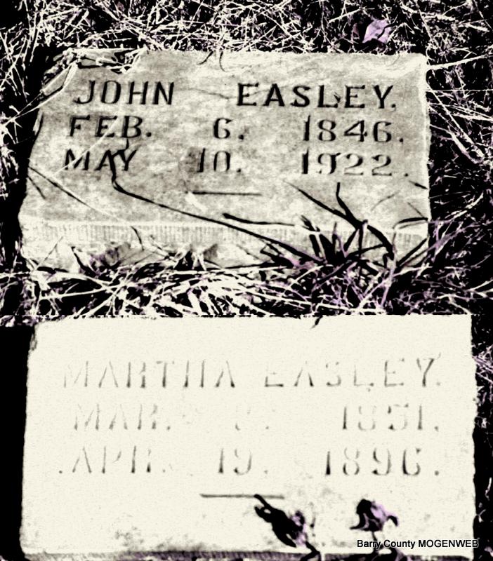 | EASLEY, Martha (ROBBINS) | Mar. 8, 1851 | Apr. 19, 1896 Barry Co., MO |
