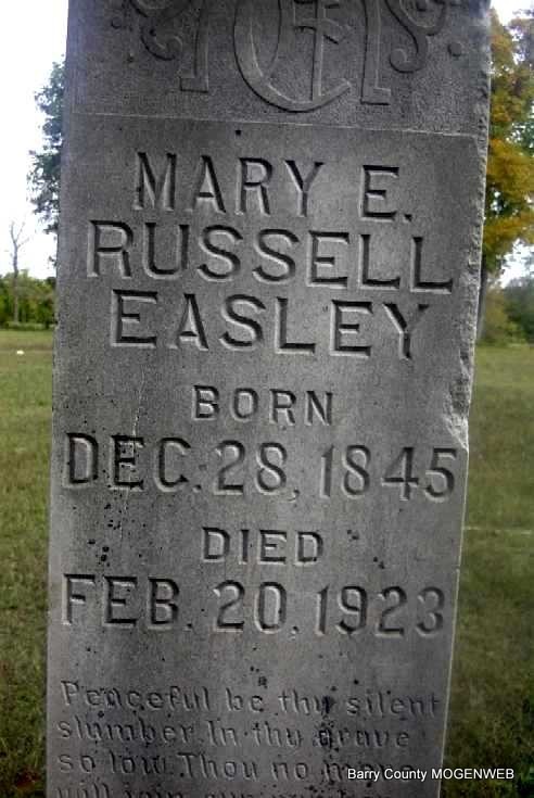 | EASLEY, Mary Elizabeth (RUSSELL) | Dec. 28, 1845 Barry Co., MO |