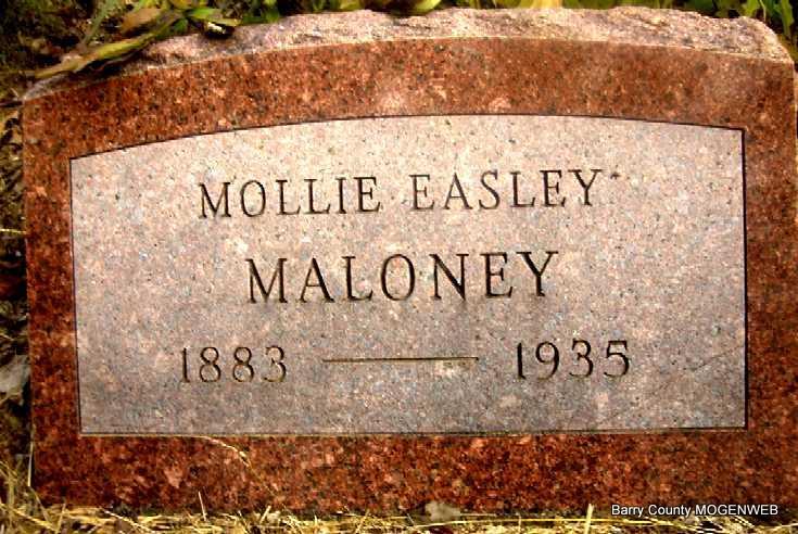 | MALONEY, Mary Elizabeth "Mollie" (EASLEY) | Oct. 13, 1883 | Sept. 22, 1935 | Research Note: Daughter of Edward "Ned" Easley and Mary Elizabeth (Russell) Easley. Her husband was Henry Maloney, son of Sam Houston Maloney. (Darla Marbut's grandparents.) - July 13, 1916, Cassville Republican - Personal and Local News: Miss Mollie Easley, youngest daughter of Mr. and Mrs. Ned Easley of Eagle Rock and Henry Maloney also of Eagle Rock were married July 3 at Carthage. For the present they will be located in Kansas. They are from good families and are highly respected young people. | Online Newspapers Photo Note Darla Ball Marbut |