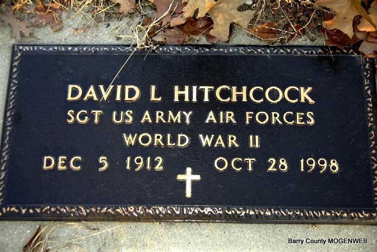 | HITCHCOCK, David L. | Dec. 5, 1912 | Oct. 28, 1998 | Inscription: "Sgt US Army Air Forces, World War II" | Photo Note Darla Ball Marbut |