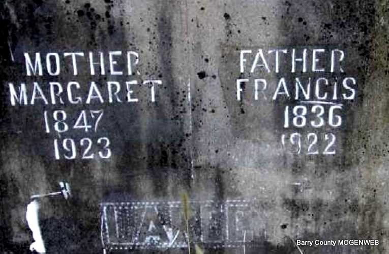 SSW: Margaret (Cofer) Larecy - Research Note: Immigrated to the U. S. in 1854. Francis Larecy married Margaret Cofer on Mar. 3, 1870 in Webster Co., MO. Parents of Julia Larecy who married Lewis A. Smith and Mollie Larecy who married William Greenberry Easley. - Cassville Democrat, April 28, 1917 - A message was received Wednesday from W. E. Larecy, Soper, Okla., to his father F. Larecy at Eagle Rock stating that two of his children, Elby and Margaret had died of measles. The remains were interred there Thursday. Wm. E. Larecy was raised at Eagle Rock and his many acquaintances in this county will deeply sympathize with him in his great sorrow. - Cassville Republican, May 23, 1918 - Celebrates 80th Birthday - The children of Frank Larecy assisted by their mother and a large number of neighbors and friends, gathered at the Larecy home in Eagle Rock Monday, May 20, and set a fine dinner in honor of his 80th birthday. He was completely surprised and appreciate very much the honor paid him. His two sons, John and Will, who live at Hugo, Okla., came in the latter part of last week. John had to return home Saturday night on account of the illness of his boy who accompanied him on the trip. The other children of the family were present Monday. Mr. and Mrs. Larecy have lived at Eagle Rock about 38 years. They were for many years engaged in the mercantile business there. They enjoy the esteem of a large circle of friends and acquaintances through the southeastern part of the county. They are both in fair health for people of their advanced years. | Census Online Newspapers MO Marriage Records Phyllis Long Photo Note Darla Ball Marbut |