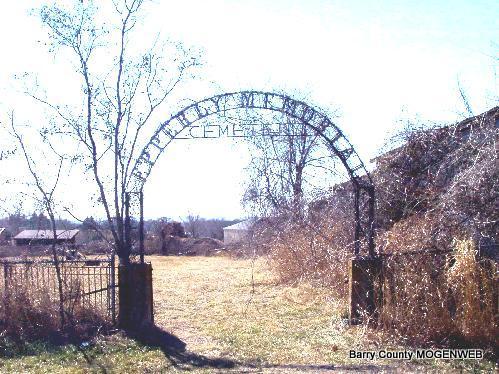 Directions: Take Highway 39 south to Shell Knob. Turn west on Farm Road 1240 and go 1/10 of a mile. The entrance to the cemetery in on the south side of the road, just before the Shell Knob Boat and RV Storage. There is a large iron gate and entryway, probably covered with ivy in the warmer months.
