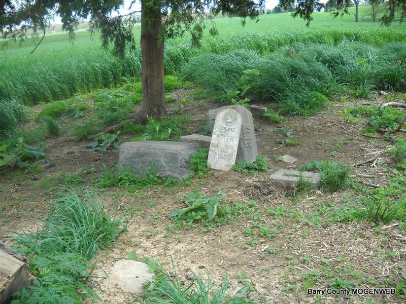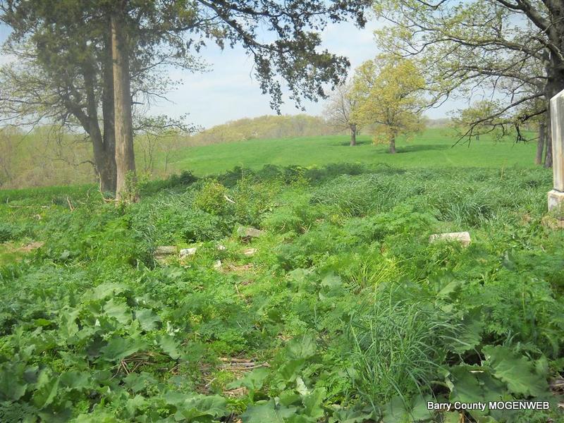 Directions: From Seligman on Highway 37, turn south onto FR 1062. At the T, turn left (east) on FR 2280. On the right is the Seligman Sewage system. The cemetery is behind the right hand corner of the pond.