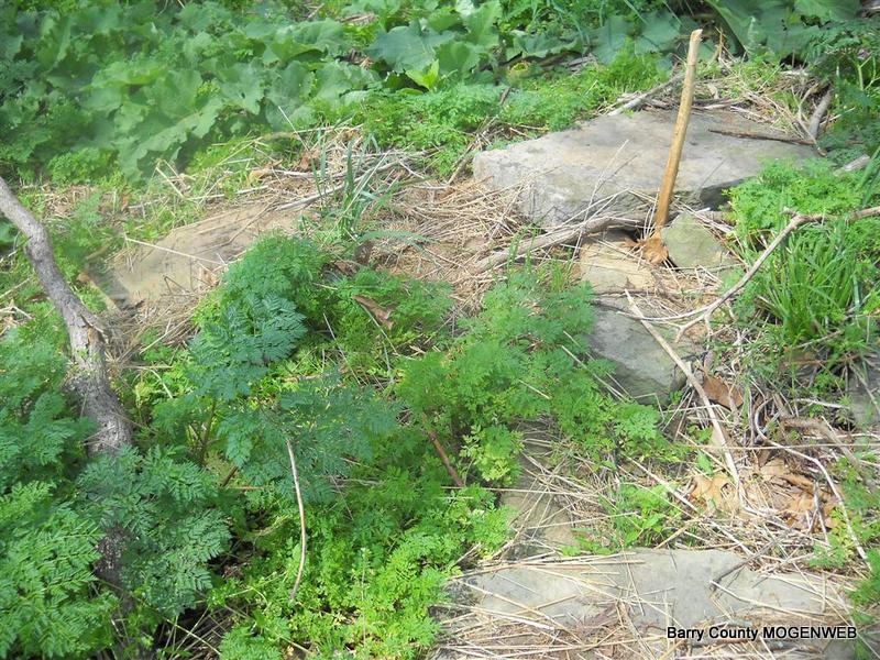 Cemetery is not fenced and cattle have been running in it. Stones are broken and on the ground. There are probably 30 to 35 graves here. Many have field stones and are unmarked.