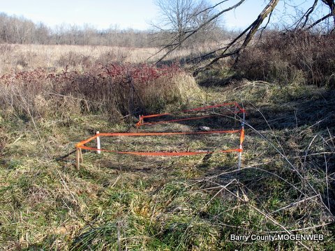The graves were staked out but the headstones were not located. Three additional trips have been made to the property in search of the grave markers without success. This site is located on county road FR1135 .3 of a mile north of Merles Chapel in Section 3, T23N, R27W.