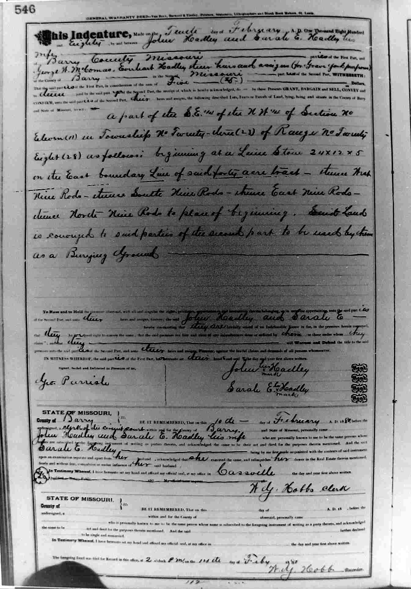 Deed to John and Sarah's land