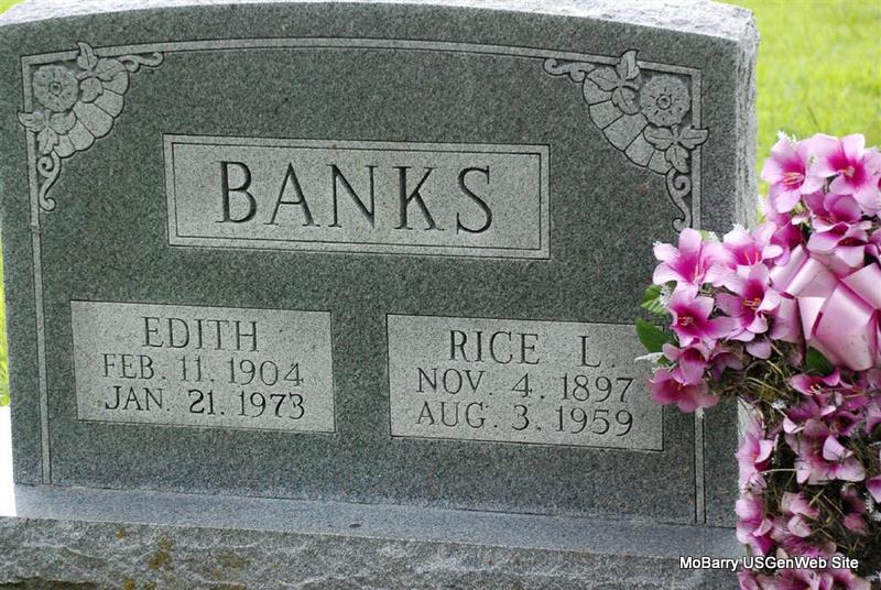 | BANKS, Edith (MORGAN) | Feb. 11, 1904 | Jan. 21, 1973 | SSW: Rice L. - Research Note: Edith was a daughter of Joseph M. and Samantha Ann (Weathers) Morgan. | Note Donna Cooper Photo Cindy Marcell |