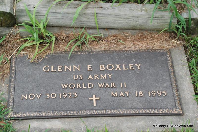 Inscription: "US ARMY WORLD WAR II" - Research Note: Son of James Alfred and Clara Frances (Sperry) Boxley. His wife was Lora Fern Hall, married in 1949 in NM. He was a heavy equipment operator and truck driver for 37 years. He lived in AR and CO prior moving to Washburn in 1978. He was a decorated veteran of WW II, serving with the 136th Infantry Division in the Pacific Theater. Specifically in New Guinea, Morotai Islands, and the Philippines. | Obit Phyllis Long Photo Cindy Marcell |