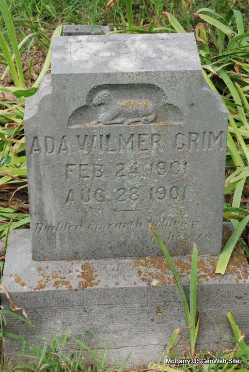 | CRIM, Ada Wilmer | Feb. 24, 1901 | Aug. 28, 1901 | Research Note: Ada was probably a child of Levi Wiley and Mary Caroline (Morgan) Crim. | Note Donna Cooper Photo Cindy Marcell |