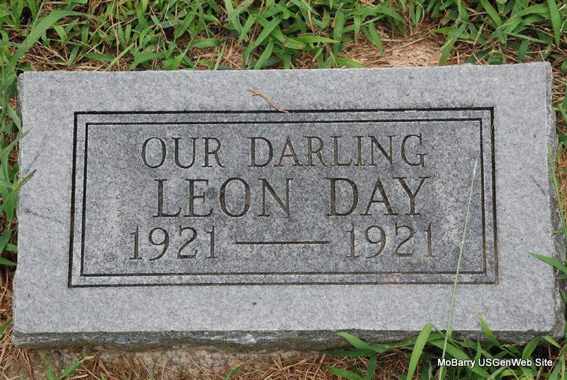 | DAY, Leon | 1921 | 1921 | Inscription: "Our Darling" - Research Note: Son of Henry Bennett Day and Sarah Alma Mullins. | Family Knowledge James Darrell Day Photo Cindy Marcell |