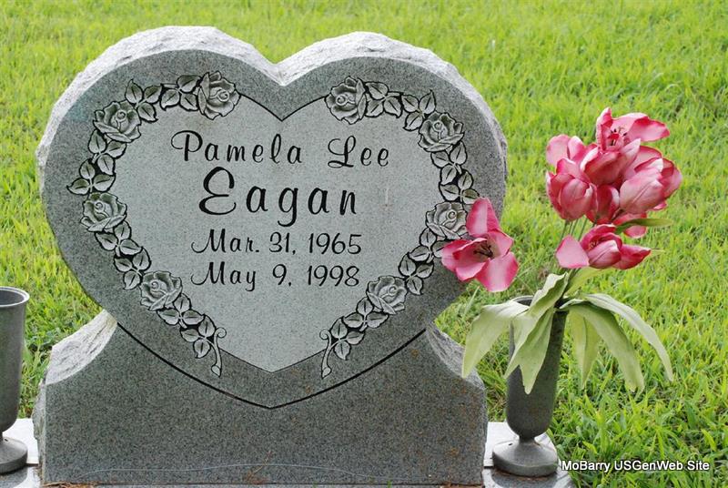 | EAGAN, Pamela Lee | Mar. 31, 1965 | May 9, 1998 | Research Note: Survived by her husband and one son. Diabetes was the cause of death. | Headstone Mary Homesley Note Phyllis Long Photo Cindy Marcell |
