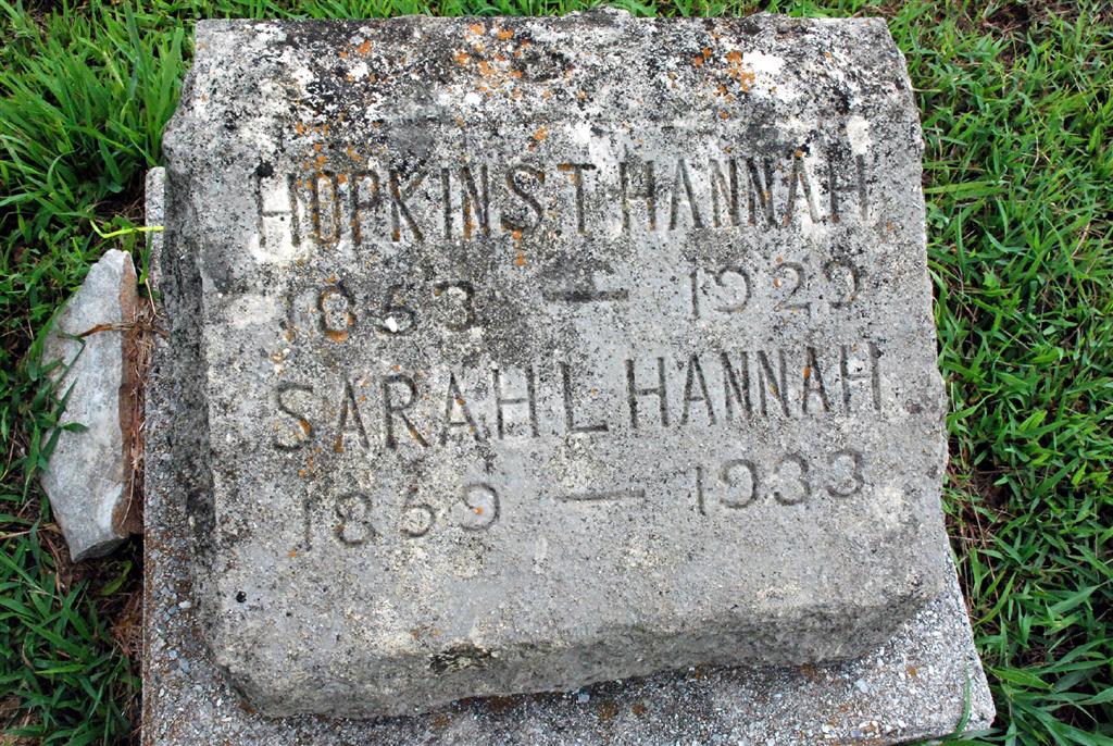 | HANNAH, Sarah L. (CRIM) | 1859 | 1933 | SSW: Hopkins T. - Research Note: Homemade stone. She was a daughter of William S. and America (Bradley) Crim. Her father was born in TN and her mother in IN. | Note Donna Cooper Photo Cindy Marcell |