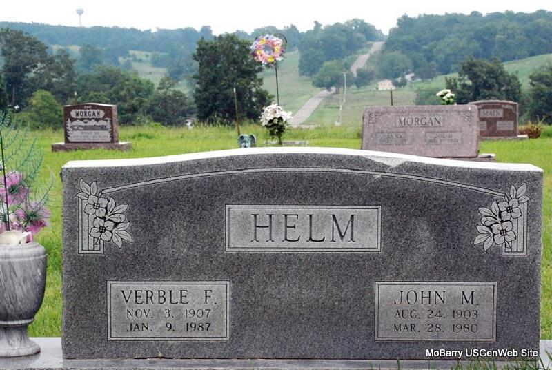 | HELM, John M. | Aug. 24, 1903 | Mar. 28, 1980 | SSW: Verble F. - Research Note: Son of Merideth Helm and his second wife Lillian Belle Duncan. He first married at age 23 to Jean Orr, age 20, on June 24, 1927 in Jackson Co., MO. He second married Verble Watson in 1941. | MO Marriage Records Census Phyllis Long Photo Cindy Marcell |