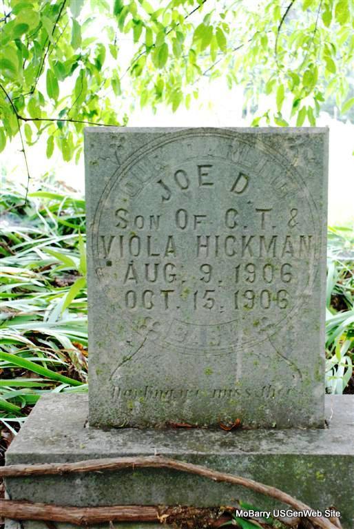 | HICKMAN, Joe D. | Aug. 9, 1906 | Oct. 15, 1906 | Inscription: "Son of C. T. and Viola Hickman" - Research Note: Son of Charles Townsend "Toney" Hickman and Viva Viola Chadd, both buried at Washburn Prairie Cemetery. | Note Phyllis Long Photo Cindy Marcell |
