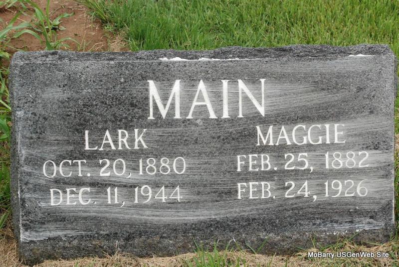 SSW: Maggie - Research Note His death certificate names Benjamin F. Main as his father and Nancy Brunson was given as his mother. Lora Main (second wife) was given as his wife's name. He was a farmer. The cause of death was given as carcinoma. Mrs. Lora Main was the informant. - Cassville Democrat, May 26, 1917 - Washburn and Greasy Creek Mixups: Lark Main has a freak chicken with four legs; the hind pair do not reach the ground, but they get action when the youngster scratches for worms. | Death Certificate Online Newspapers Donna Cooper Photo Cindy Marcell |