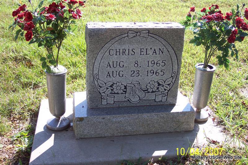 | EL'AN, Chris | Aug. 8, 1965 | Aug. 23, 1965 | Research Note: This grave was in between the Toler graves so it might be that he was part of the Toler family. | Photo Diana Cope |