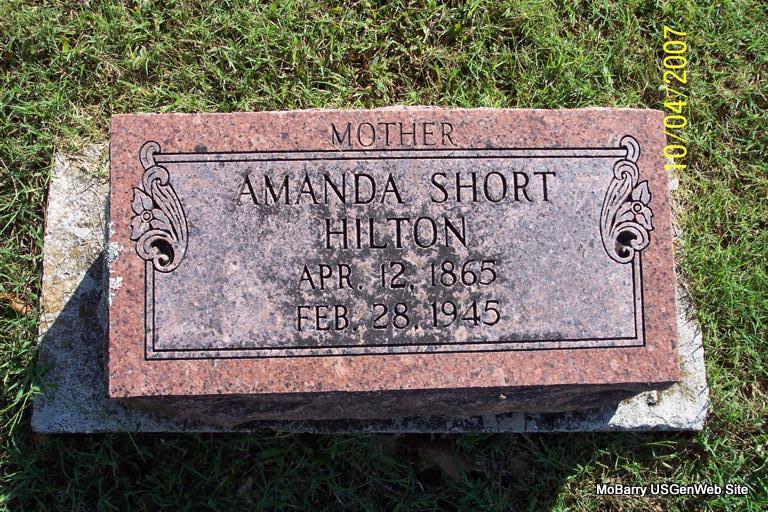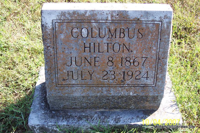 | HILTON, Columbus | June 8, 1867 | July 23, 1924 | Research Note: His wife was Amanda (Lasiter) Short. Son of James M. Hilton and Adaline Walker. Columbus H. Hilton married Amanda Short on Oct. 13, 1889 in Barry Co., MO. | Note Robert Moreland MO Marriage Records Census Phyllis Long Photo Diana Cope |