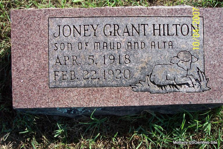 | HILTON, Joney Grant | Apr. 5, 1918 | Feb. 22, 1920 | Inscription: "Son of Maud and Alta" - Research Note: Son of Maud Hilton and Alta Ellen Woodhouse. | Note Phyllis Long Photo Diana Cope |