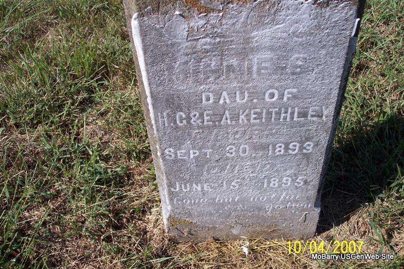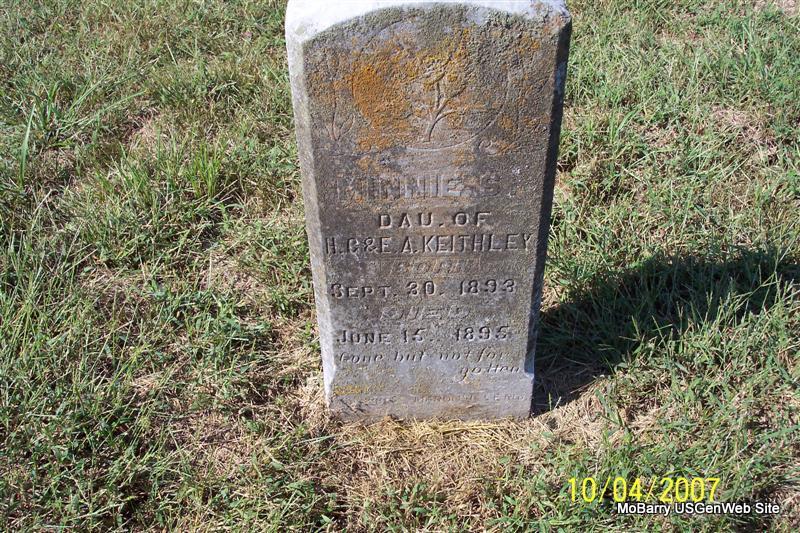 | KEITHLEY, Minnie S. | Sept. 30, 1893 | June 15, 1895 | Inscription: "Dau. of H. C. and E. A." - Another Photo | Photos Diana Cope |