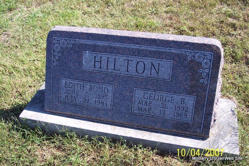 | HILTON, George Benton | Mar. 31, 1892 | Mar. 13, 1969 | SSW: Edith Bond - Research Note: His father was Columbus Hilton and his mother was Amanda J. (Lasiter) Short. | Census Phyllis Long Photo Diana Cope |