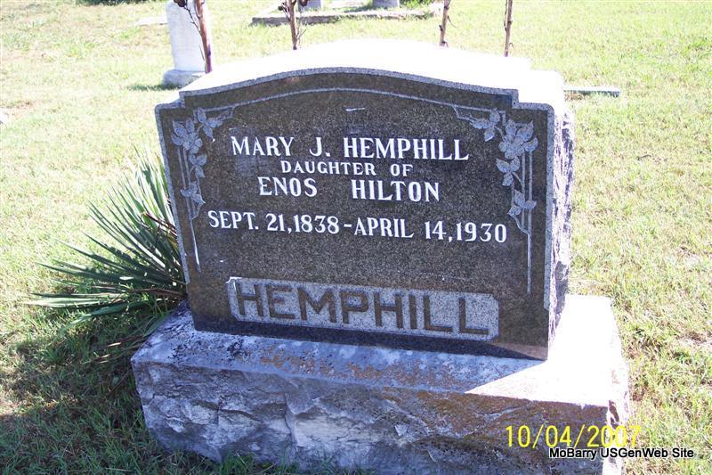 | HILTON, Nancy Jane (THOMAS) | Mar. 13, 1859 MO |