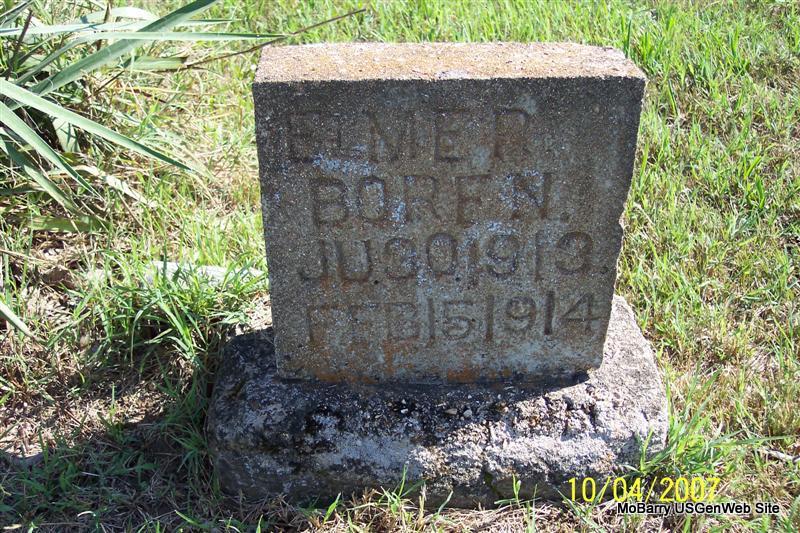 | BOREN, Vance | Abt. 1884 | Oct. 3, 1887 | Inscription: Age 2 yrs. 9 mo. 2 days - Research Note: Listed on the Stone Co., MO transcription. | Headstone Elizabeth Langley |