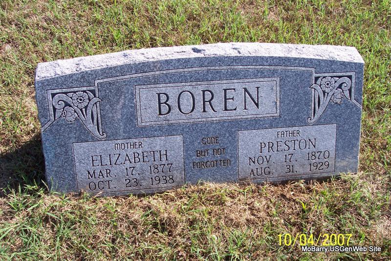 | BOREN, Enos Preston "Press" | Nov. 17, 1870 Scholten, Barry Co., MO |