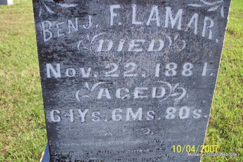 | LAMAR, Benjamin Franklin | May 14, 1817 Frederick Co., MD |