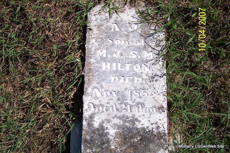 | HILTON, James M. | Jan. 1857 | Sept. 1857 | Inscription: "Son of M. and S. M. Aged 9 Mos." - Research Note: Son of Mathew Bird Hilton and Susan Mary Merritt. | Note Phyllis Long Photo Diana Cope |