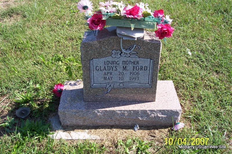 | FORD, Gladys M. | Apr. 20, 1906 | May 10, 1993 | Inscription: "Loving Mother" - Back of Stone | Photos Diana Cope |