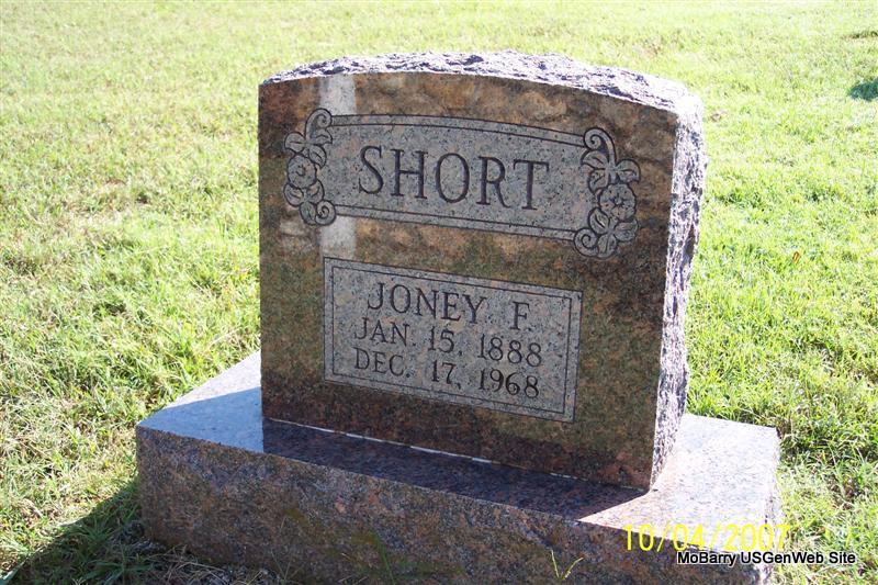 | SHORT, Joney Fair | Jan. 15, 1888 | Dec. 17, 1968 | Research Note: Son of James Fair Short and Amanda (Lasiter) (Short) Hilton. Amanda is buried in Hilton Cemetery as Amanda Hilton. According to other researchers, he was married 4 times. | Census Phyllis Long Photo Diana Cope |