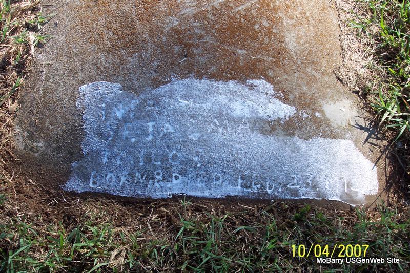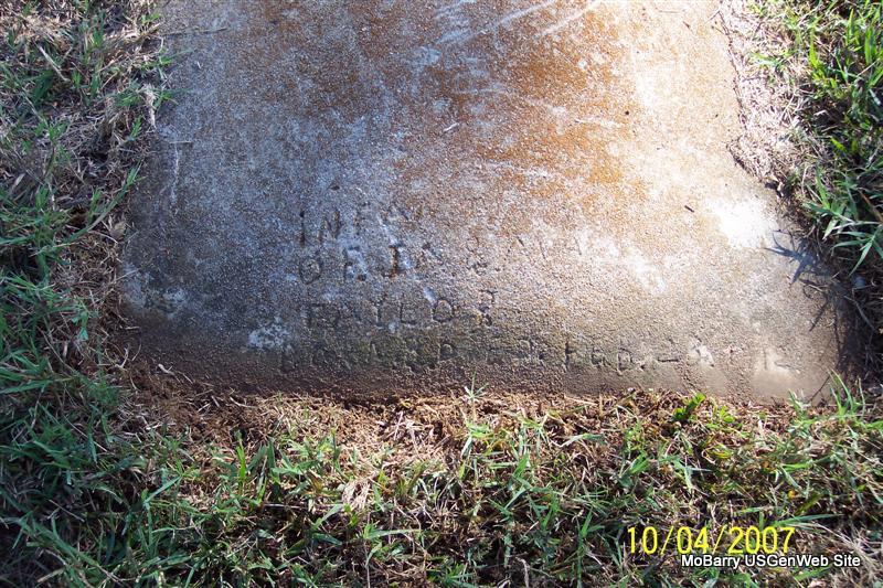 | TAYLOR, Infant | Feb. 23, 1912 | Feb. 23, 1912 | Inscription: "Infant of I. A. and M. A. Taylor - Born and Died Feb. 23, 1912" - Research Note: This is a home made stone and difficult to read. - Another Photo - Another Photo | Note Photos Diana Cope |
