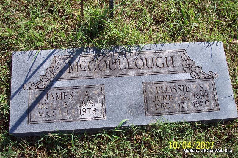 | MCCOULLOUGH, James A. | Oct. 6, 1896 | Mar. 4, 1978 | SSW: Flossie S. - Research Note: Son of Newton McCoullough and Mary Alice Bowling. | Census Phyllis Long Photo Diana Cope |