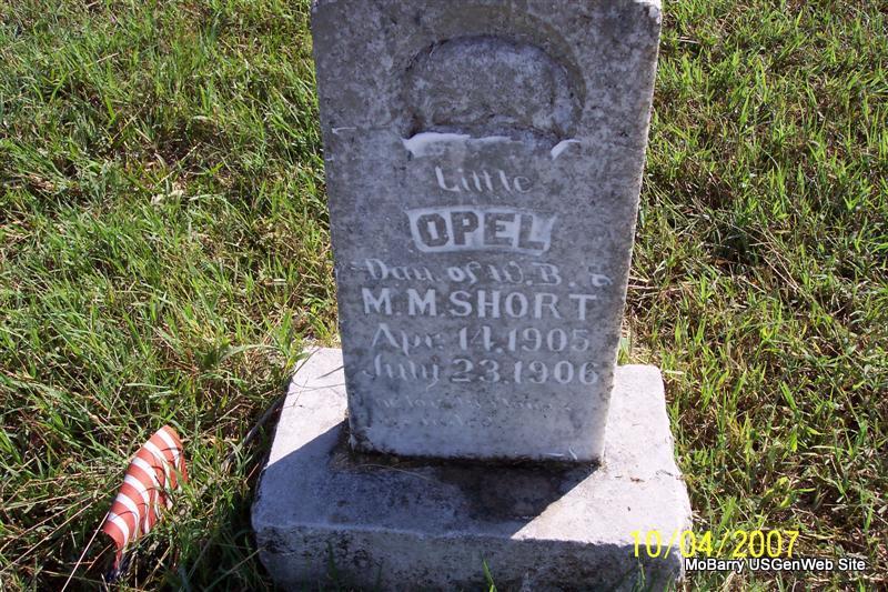 | SHORT, Opel | Apr. 14, 1905 | July 23, 1906 | Inscription: "Dau. of W. B. and M. M. Short" - Another Photo | Photos Diana Cope |