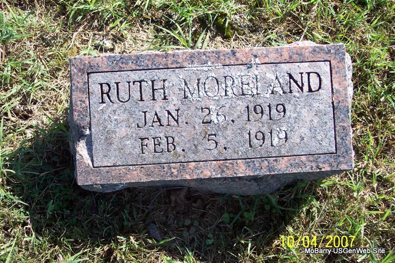 | MORELAND, Ruth | Jan. 26, 1919 | Feb. 5, 1919 | Research Note: Daughter of Arthur Moreland and Mary Elizabeth "Lizzie" Collins. | Headstone Robert Moreland Note Phyllis Long Photo Diana Cope |
