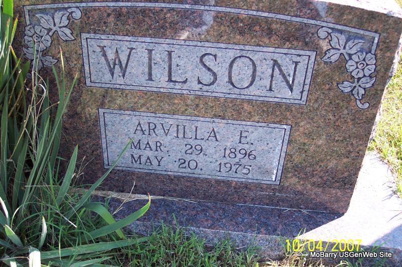 | WILSON, Arvilla Elva (BUTLER) | Mar. 29, 1896 | May 20, 1975 | Research Note: Daniel Leonard Wilson was her husband's name. John Jeremiah and Nancy (Hilton) Butler were her parents. She is buried between Daniel Wilson and Rachel (Hilton) Butler. | Note Donna Cooper Photo Diana Cope |
