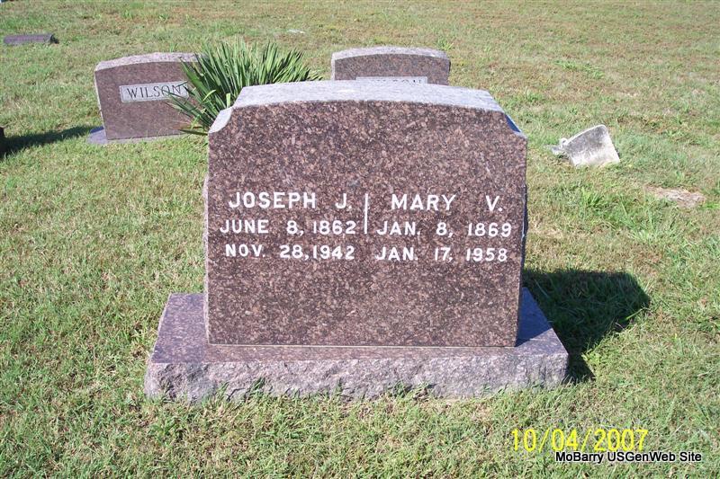 | SEITZ, Mary Virginia (HILTON) | Jan. 8, 1869 | Jan. 17, 1958 | SSW: Joseph J. - Research Note: She was a daughter of Mathew Bird and Susan Mary (Merritt) Hilton. J. J. Seitz married Mary V. Hilton on May 17, 1887 in Barry Co., MO. - Back of Stone | Census MO Marriage Records Phyllis Long Photo Diana Cope |