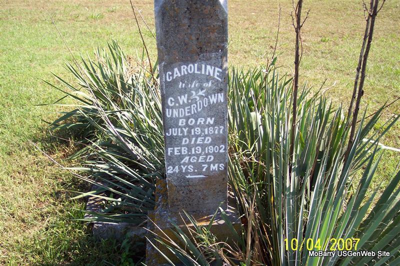| UNDERDOWN, Caroline Samantha (HILTON) | July 19, 1877 Barry Co., MO |