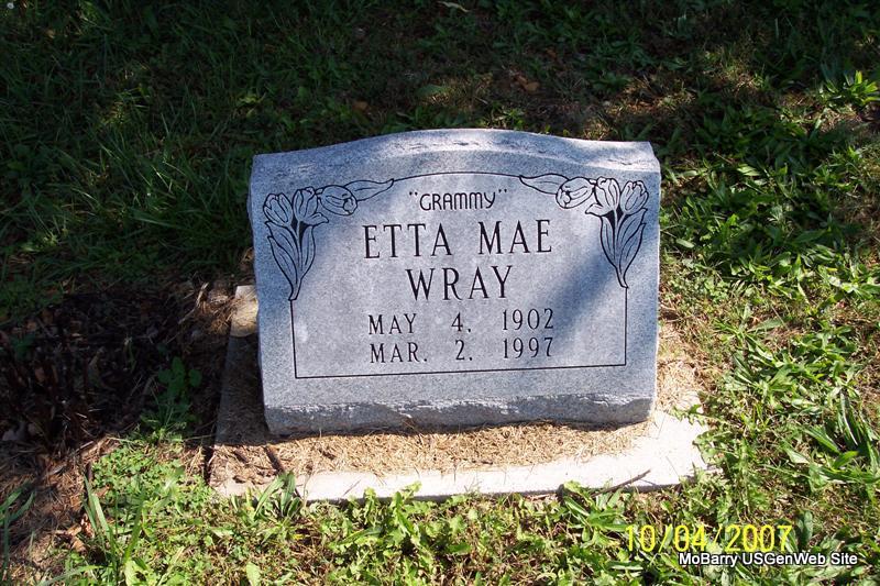 | WRAY, Etta Mae | May 4, 1902 | Mar. 2. 1997 | Inscription: "Grammy" - Back of Stone | Photos Diana Cope |