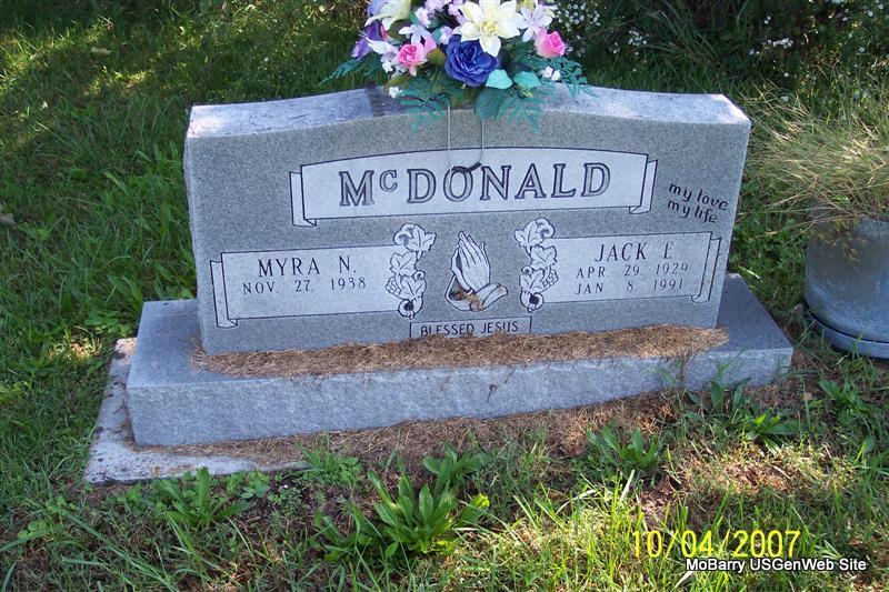 | MCDONALD, Jack Edward | Apr. 29, 1929 | Jan. 8, 1991 | SSW: Myra N. - Back of Stone | Photo Diana Cope |