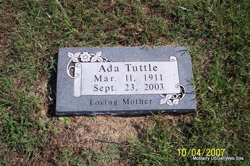 | TUTTLE, Ada | Mar. 11, 1911 | Sept. 23, 2003 | Inscription: "Loving Mother" | Photo Diana Cope |