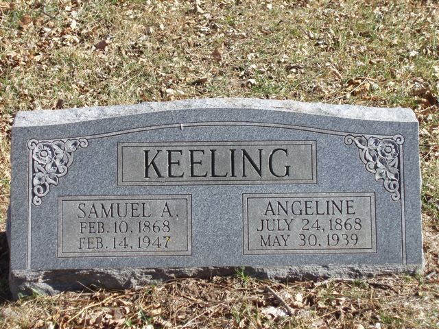 SSW: Samuel A. - Research Note: Daughter of R. C. Overton born TN and Amanda Pace born GA. Samuel A. Keeling, her husband, was the informant on the death certificate. Dates on the DC are July 24, 1869 and died May 31, 1939. These dates also agree with the obit. - Wheaton Journal, June 8, 1939 - Angie (Overton) Keeling, daughter of R. C. and Amanda Overton, was born July 24, 1869 at the old Overton homestead near Wheaton, Mo., where she was residing at the time of her death. She departed this life May 31, 1939, at the age of 69 years, 10 months and 7 days. She was united in marriage to Samuel A. Keeling in June 1892. To this union was born five children. Two of them, Robert and Emmer, proceeded her in death. She leaves to mourn her passing her devoted husband, three children, Mrs. Gladys Tarvin and Byron Keeling of Shoal Creek Community and Mrs. Imogene Plaster of Tulsa, Okla.; eight grandchildren; three brothers, Dr. B. F. Overton of Mexia, Texas, R. C. Overton, Adair, Okla., Grover Overton, Muskogee, Okla.; two sisters Mrs. Lillie Hawks of Sacramento, Calif., and Mrs. Jessie Richardson of Wheaton, Mo., many other relatives and a host of friends. Eleven brothers and sister have preceded her in death. She was converted in early life and united with the Methodist Church but later was one of the charter members of the Free Will Baptist Church of Okla. Union of which she remained a faithful member until her death. Mrs. Keeling’s life was one of great influence for good. The spirit to do good and help her neighbors was always shown. Her death takes from this community one of the finest characters among us. We have felt her comforting spirit and enjoyed her loyal hospitality. From her heart, she radiated the influence of a vivid personality. Funeral services were conducted Friday afternoon, June 2, at the Okla. Union Church by Elder Kenneth Turner and Elder T. Farmer of Granby, Mo., and the remains were laid to rest in the family cemetery, under the direction of the Koon funeral service. - Harriet A. Overton, age 22, married Samuel A. Keeling, age 20, on June 16, 1892 in Barry Co., MO. | Death Certificate MO Marriage Records Phyllis Long Obit Donna Cooper Headstone Roger Longley - Deceased Photo Ralph and Betty Lamberson |