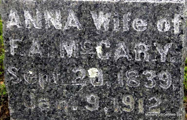 | MCCARY, Anna (HORNER) | Sept. 20, 1839 | Jan. 9, 1912 Fairview, Newton Co., MO |