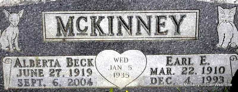 | MCKINNEY, Alberta Flora (BECK) (SECRIST) | June 27, 1919 Cassville, Barry Co., MO |