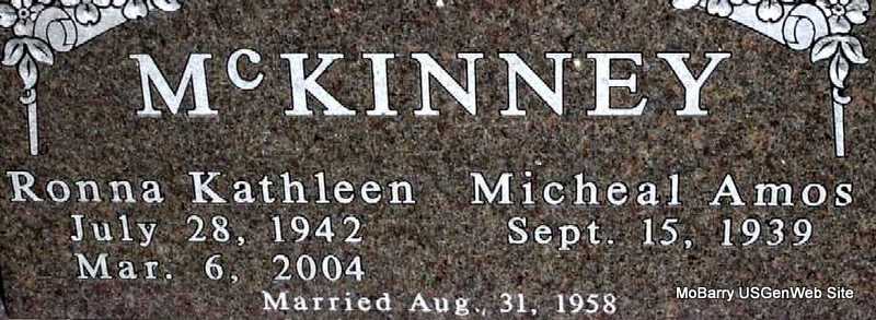 | MCKINNEY, Ronna Kathleen | July 28, 1942 | Mar. 6, 2004 | SSW: Michael Amos - "Married Aug. 31, 1958" | Photo Darla Marbut |