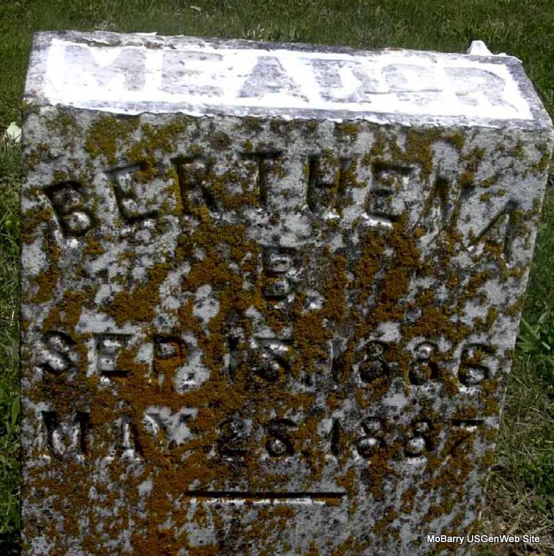 | MEADOR, Berthena B. | Sept. 15, 1886 | May 28, 1887 | Research Note: Daughter of Eli Wilson Meador and Lurana Vermillion. | Note Phyllis Long Photo Darla Marbut |